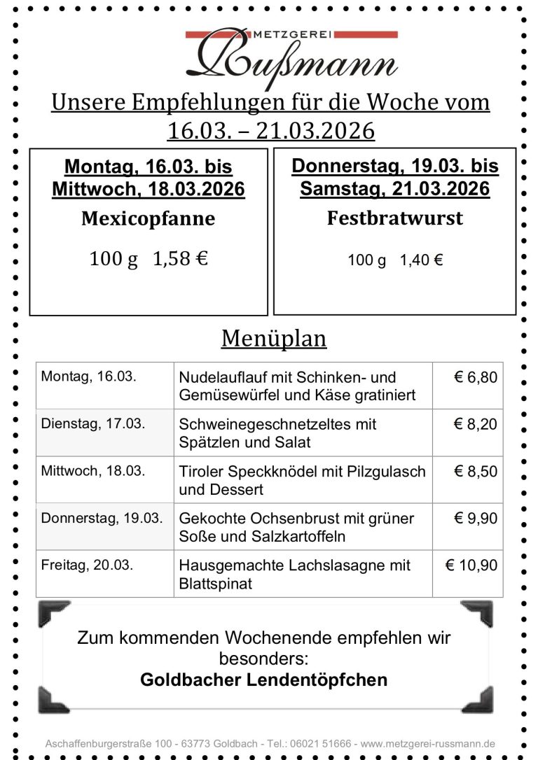Unsere Metzgerei wurde im Jahr 1925 gegründet und wird bereits in der 3. Generation geführt! Wir, die Brüder Leonhard und Rudolf Rußmann, haben das Geschäft im Jahr 1998 von unserem Vater Ernst übernommen. Metzgermeister Leonhard Rußmann hat in der Wurstküche sein Reich und ist verantwortlich für die Produktion der Wurstwaren. Rudolf Rußmann, gelernter Metzger- und Küchenmeister trägt mit seiner Frau Sabine die Verantwortung für Verkauf, Herstellung der Feinkostspezialitäten und das Catering, das weit über die Grenzen Goldbachs beliebt ist.